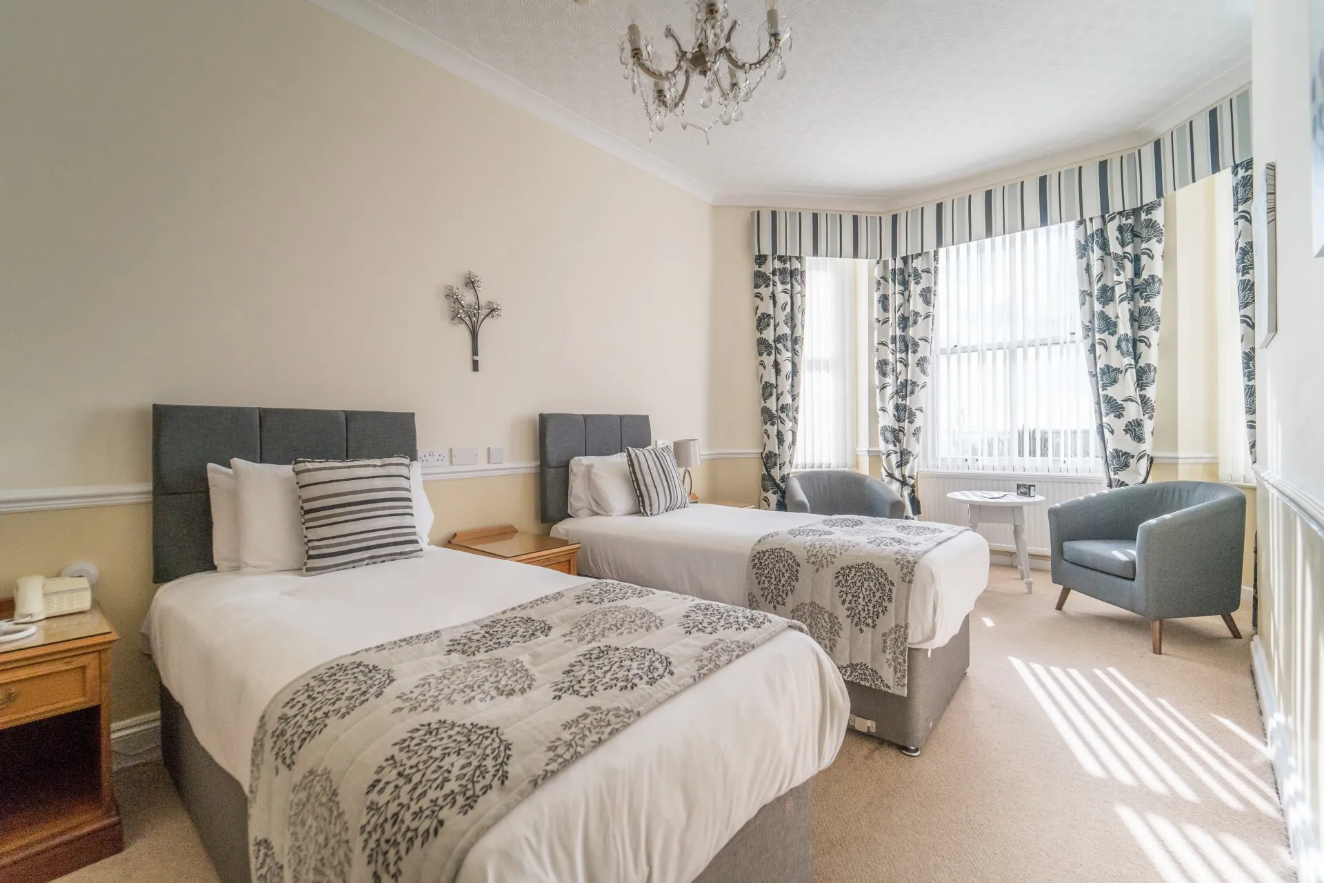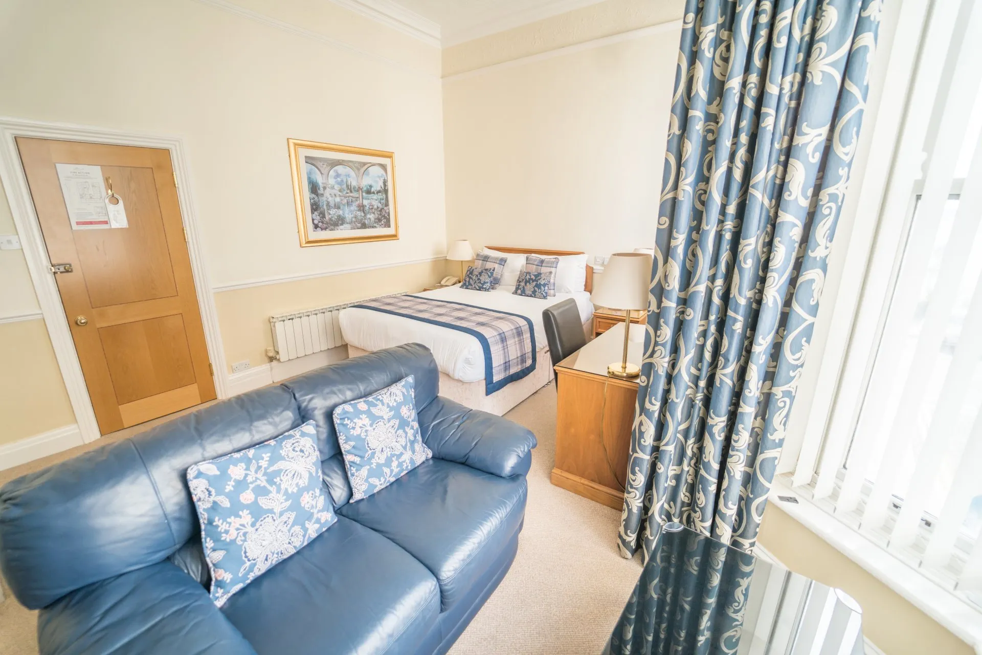 Enjoy more space, comfort, and captivating sea views in our Superior Rooms. Designed with relaxation in mind, each room features a cosy seating area with either a two-seater sofa or comfortable chairs, perfect for unwinding with a drink or simply watching the waves. The en-suite bathroom offers both a bath and shower above, giving you the choice between a refreshing start or a long soak after a day exploring Tenby.
